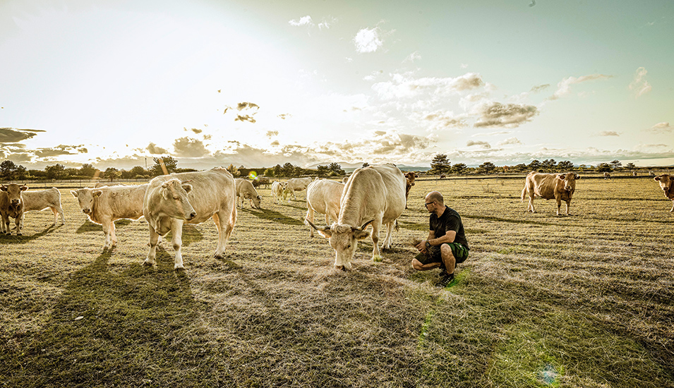 Nicht nur die alte österreichische Haustierrasse ist außergewöhnlich, auch ihre 450.000 Quadratmeter Weidefläche sind es. Die Tiere von Bio-Landwirt Matthias Frank beweiden einen Teil des Steinfelds in Niederösterreich, ein Naturschutzgebiet, das aus kargen Schotterböden besteht. Niederschlag fällt kaum. „Vor 15 Jahren habe ich mit sechs Tieren begonnen, heute sind es 30, die ich seit zwei Jahren im Vollerwerb halte“, erzählt Frank nicht ohne Stolz. Die Rinder züchtet er in Vollweidehaltung, sie sind also das ganze Jahr über auf den Flächen.