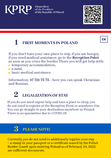 1 FIRST MOMENTS IN POLAND If you don't have your own place to stay, if you are hungry, if you need medical assistance, go to the Reception Point as soon as you cross the border. There you will get help with: temporary accommodation, a meal,…
