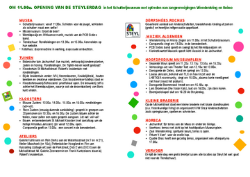 OM 11.00u. OPENING VAN DE STEYLERDAG in het Schutterijmuseum met optreden van zangverenigingen Vriendenkring en Animo MUSEA • Schutterijmuseum: vanaf 11.30u. Schieten voor de jeugd, verkleden als schutter: maak een selfie! • Missiemuseum: Groet de…