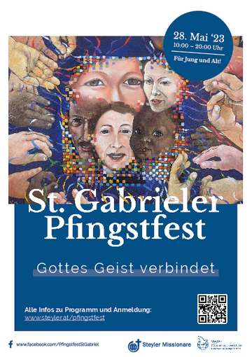 G otte s G e i s t ver b i ndet Alle Infos zu Programm und Anmeldung: www.steyler.at/pfingstfest Organisatorischer Hinweis: Das Pfingstfest 2023 wird als eintägige Veranstaltung nur am Pfingstsonntag stattfinden. Wir können im Missionshaus leider…