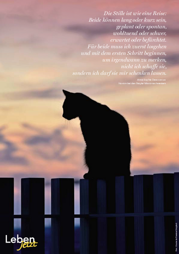 Die Stille ist wie eine Reise: Beide können lang oder kurz sein, geplant oder spontan, wohltuend oder schwer, erwartet oder befürchtet. Für beide muss ich zuerst losgehen und mit dem ersten Schritt beginnen, um irgendwann zu merken, nicht ich…